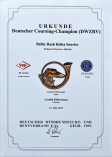 Zuri hat leider ein paar Tage vorher Probleme mit ihrem linken Hinterbein bekommen. Ich habe mit ihr teilgenommen da sie bei Berührung keinerlei Schmerzen zeigte, aber der Richter sah natürlich ihren eingeschränkten Bewegungsablauf und konnte sie deswegen nicht platzieren. Aber sie hat einen schönen Richterbericht bekommen.